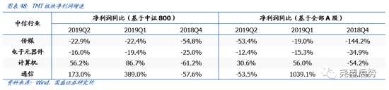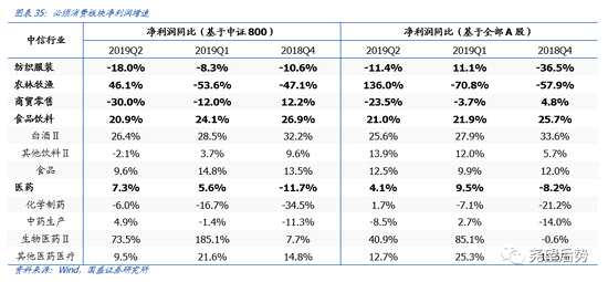 我們?cè)?019年9月1日發(fā)布報(bào)告——《龍頭韌性凸顯,哪些行業(yè)在改善?——2019中報(bào)分析之一》中對(duì)財(cái)報(bào)分析的基準(zhǔn)進(jìn)行過(guò)討論,我們認(rèn)為在行業(yè)分化加劇的背景下,基于中證800的行業(yè)分析是更為合適的。因此本篇分析我們將延續(xù)基于中證800分析的思路,文中若非特別說(shuō)明,各項(xiàng)業(yè)績(jī)指標(biāo)及財(cái)務(wù)指標(biāo)均是基于中證800標(biāo)的,通過(guò)整體法計(jì)算的(基于全A的業(yè)績(jī)?cè)鏊傥覀冇性诒砀裰辛谐龉┩顿Y者對(duì)比參考)。