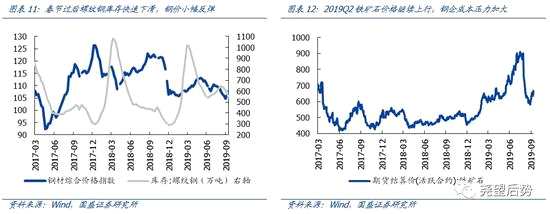 鋼鐵2019Q2的業(yè)績(jī)?cè)鏊贋?36.1%(2019Q1為-42.7%),小幅改善。2019年春節(jié)復(fù)工后,二季度鋼鐵進(jìn)入旺季,螺紋鋼庫(kù)存下滑帶動(dòng)鋼鐵價(jià)格小幅反彈,但是成本端鐵礦石價(jià)格持續(xù)大漲,對(duì)鋼企盈利造成侵蝕。從三季度的情況來(lái)看,隨著巴西供給的恢復(fù),鐵礦石價(jià)格大幅回落;但同時(shí)由于鋼鐵進(jìn)入淡季,下游需求走弱,鋼價(jià)也有所下滑,整體來(lái)看三季度鋼鐵行業(yè)業(yè)績(jī)大概率仍在底部震蕩。