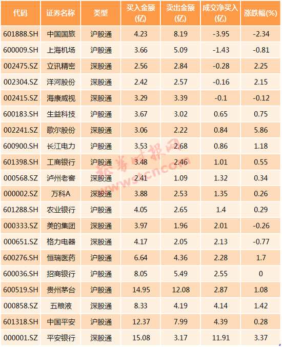 另外,從交易所公布的滬股通和深股通前十大活躍股名單來看,【中國國旅(601888)、股吧】、上海機場、立訊精密、洋河股份、海康威視等5只個股遭北上資金凈賣出。其中中國國旅、上海機場、??低暪蓛r出現(xiàn)不同程度的跌幅。
