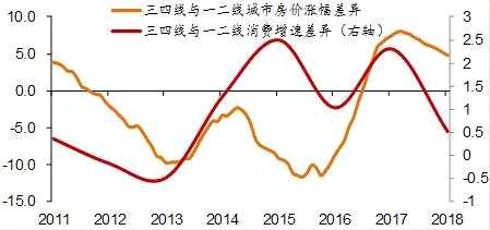我們的研究表明,房地產繁榮對消費的拉動作用還是比較明顯的,因為房價上漲能帶來“財富幻覺”,購房之后對家具、家裝、家電的需求增加。因此,房價表現好的城市,消費也表現好;房價差的城市消費也較差。