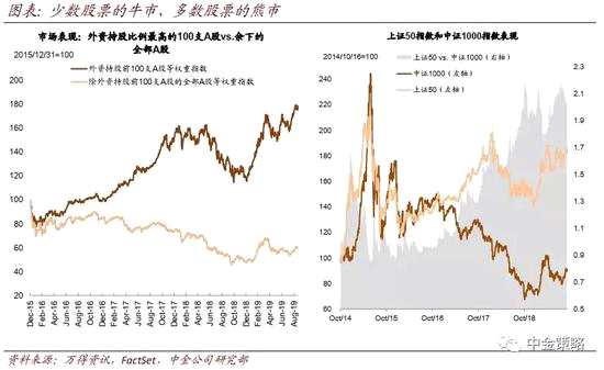 隨著A股的開放及國際指數(shù)的不斷納入,以及國內(nèi)市場機(jī)構(gòu)化比例的持續(xù)提升,A股市場相對穩(wěn)定的增量資金多數(shù)來自外資及國內(nèi)機(jī)構(gòu),這也為這類相對高質(zhì)地、大市值、競爭優(yōu)勢明顯的白馬藍(lán)籌股提供資金支持。我們在前期發(fā)表了主題報告《中國A股的機(jī)構(gòu)化和國際化:還是“散戶”市場嗎?》對這一趨勢進(jìn)行了分析。
