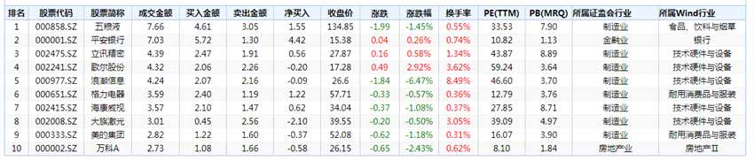 深股通前十大活躍個股中則出現(xiàn)了不少凈流入。其中,平安銀行(000001)凈買入額最高,為4.42億元。自8月27日以來的15個交易日中,該股僅在9月9日出現(xiàn)0.88億元的小幅凈流出,合計凈流入39.99億元。五糧液(000858)和【格力電器(000651)、股吧】(000651)的凈買入額也超過1億元,分別為1.55億元和1.22億元。