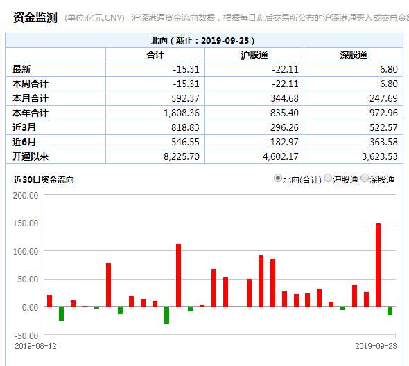 不過,北向資金在這一生效日卻出現(xiàn)了9月以來最多的一次凈流出。截至收盤,北向資金合計凈流出15.31億元,其中滬股通凈流出22.11億元,這也是8月26日以來最大的一次單日凈流出;而深股通則凈流入6.8億元。