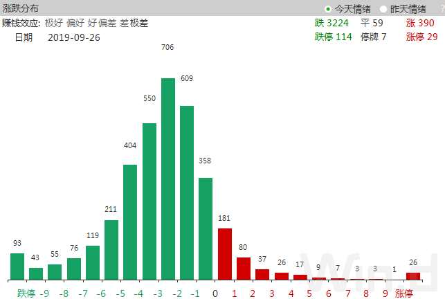 9月26日,滬深兩市全面回調(diào),漲停板數(shù)僅26家,跌停板個股數(shù)量近100家,上漲個股不足400家,下跌個股超過3200家。從漲幅分布來看,有2200多家公司跌幅在-1%到-5%之間,還有500多家公司跌幅超過5%,市場全面走弱,多數(shù)個股跌幅較深。市場呈現(xiàn)普跌態(tài)勢,科技類板塊跌幅居首,與此同時,部分低估值高成長股吸引力進(jìn)一步增強(qiáng)。