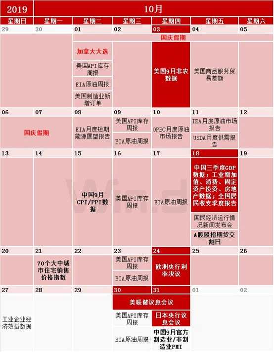 展望年內(nèi)A股、債市、期市、匯市走向,多家券商已發(fā)布展望報(bào)告并給出市場(chǎng)策略。文末還有Wind制作的2019年四季度投資日歷,供廣大投資者參考。