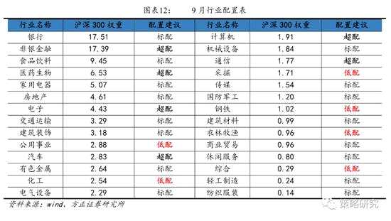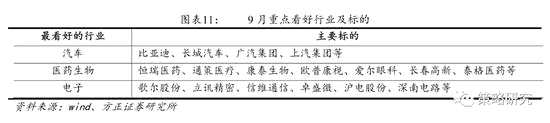 2.2 九月行業(yè)配置:首選汽車、醫(yī)藥生物、電子