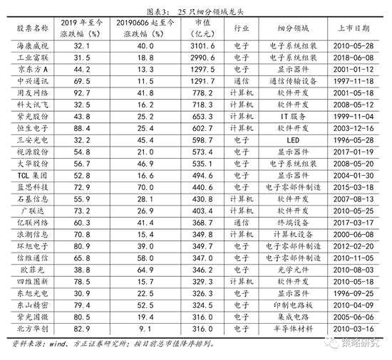標(biāo)準(zhǔn)2:細(xì)分領(lǐng)域的科技龍頭。需要滿足的條件包括:① 目前總市值須在300億以上,這樣基本在細(xì)分領(lǐng)域才對等業(yè)務(wù)龍頭地位;② 今年以來的漲跌幅雖沒翻倍,但也應(yīng)在平均水平以上,創(chuàng)業(yè)板今年至今漲幅大概在30%;③ 第二段科技行情下漲幅不為負(fù);④ 上市日期在2019年9月之前。按此標(biāo)準(zhǔn)篩選,有25只細(xì)分領(lǐng)域的科技龍頭。
