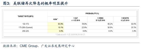 3. 中國貨幣政策掣肘尚未被證偽。(1)美聯(lián)儲(chǔ)10月底降息概率回升——由于全球經(jīng)濟(jì)增長(zhǎng)疲態(tài)畢現(xiàn)尤其是美國經(jīng)濟(jì)數(shù)據(jù)惡化,海外投資者再度對(duì)美聯(lián)儲(chǔ)寬松的預(yù)期有所修復(fù),美聯(lián)儲(chǔ)年內(nèi)再次降息的概率從一周前的49.2%大幅提升到當(dāng)前的83.9%;(2)中國貨幣政策從“掣肘上升”轉(zhuǎn)向“難超預(yù)期”的邊際改善——我們?cè)谒募径炔呗哉雇刑岬剑捎谌蛸Q(mào)易環(huán)境不確定性,寬松對(duì)全球經(jīng)濟(jì)增長(zhǎng)的拉動(dòng)效果會(huì)打折扣,因此10月10日第13次貿(mào)易談判的結(jié)果就顯得更為重要,將影響到全球經(jīng)濟(jì)增長(zhǎng)前景的階段性評(píng)估(長(zhǎng)期增長(zhǎng)引擎的問題并未得到解決)。大體上我們認(rèn)為全球?qū)捤傻拇蠓较虿粫?huì)改變,而短期寬松預(yù)期再度增強(qiáng)有助于中國貨幣政策預(yù)期趨于平穩(wěn)(從“掣肘上升”轉(zhuǎn)向“難超預(yù)期”的邊際改善);(3)政策組合的未來觀察指標(biāo):貿(mào)易談判(10月10日)+中央政治局會(huì)議(10月下旬)+美聯(lián)儲(chǔ)議息會(huì)議(10月底)+MLF續(xù)做(11月初)——后三個(gè)事件都與第一個(gè)有較大關(guān)聯(lián),我們預(yù)計(jì)貿(mào)易談判的階段性結(jié)果將提供市場(chǎng)后續(xù)的發(fā)展更清晰的指引。由于當(dāng)前中國的就業(yè)壓力在過去一個(gè)季度有所增大,因此本次如果成功達(dá)成階段性局部協(xié)議,也不會(huì)對(duì)國內(nèi)穩(wěn)增長(zhǎng)的政策預(yù)期有較大影響,應(yīng)視為階段性利好。