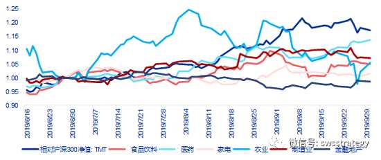 在9月29日的一周回顧與展望報告《要腳踏實地,也要抬頭看路》中,我們討論了四季度“順周期”階段性表現(xiàn)的可能性,市場關(guān)注度較高,也有部分投資者提出了一些分歧,集中在當前消費和科技龍頭的趨勢仍未結(jié)束,順周期表現(xiàn)的邏輯尚未有效形成,左側(cè)布局有風險上。實際上,我們對于這樣的看法是認可的,所以才叫“抬頭看路”“伏脈千里”。這里對我們的觀點做進一步的明確:2016Q3以來龍頭溢價效應(yīng)維持高位,個股抱團取暖廣泛存在,研究創(chuàng)造價值在龍頭個股上得到了最充分的體現(xiàn)(一個眼前的例子是公募基金重倉的醫(yī)藥股,在全國帶量采購后,凈值依然穩(wěn)步上行)。這使得大的板塊輪動和風格切換在投資者決策中的權(quán)重降低?;蛘哒f核心資產(chǎn)、龍頭個股作為一個板塊在行業(yè)比較中的排序始終都是比較靠前的。這形成了“一道門檻”,降低了市場對板塊輪動的敏感度。所以,一個新的占優(yōu)風格板塊出現(xiàn),需要一段時間的催化劑積累,需要經(jīng)歷“從量變到質(zhì)變”的過程。我們說“順周期”行業(yè)的邏輯“伏脈千里”,是看到了歲末年初順周期行業(yè)邏輯理順的可能性,即“寬貨幣 + 寬信用 + 抑通脹”的格局出現(xiàn),現(xiàn)在僅僅是正面催化緩慢積累,市場預期緩慢調(diào)整的階段。所以,順周期行業(yè)在戰(zhàn)略上要重視,研究和數(shù)據(jù)跟蹤上要傾斜,但戰(zhàn)術(shù)上還不是急索,左側(cè)布局還是等預期更明確后再切換,完全可以因人而異。