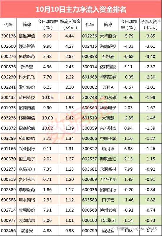 個(gè)股來(lái)看,共有19只個(gè)股主力資金凈流入超億元,13股資金流出超億元。