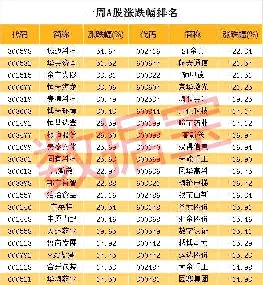 除洽洽食品、金字火腿外,本周個股又有哪些亮點?證券時報·數(shù)據(jù)寶統(tǒng)計顯示,不含近一個月上市的次新股,15只個股累計漲幅超過20%,其中誠邁科技累計漲幅54.67%登頂本周漲幅榜。