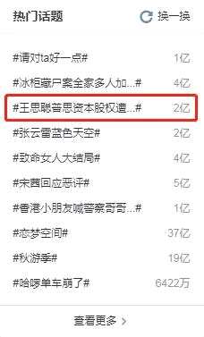 今天,一條王思聰普思資本股權(quán)遭凍結(jié)的消息上熱搜榜。