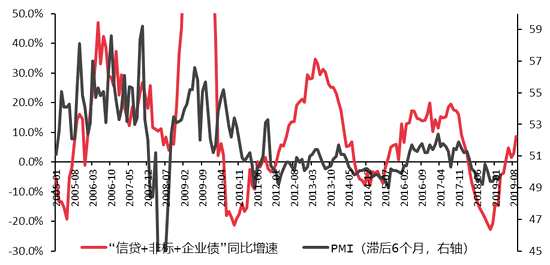 “信貸+非標(biāo)+企業(yè)債”指標(biāo)領(lǐng)先PMI約6個(gè)月