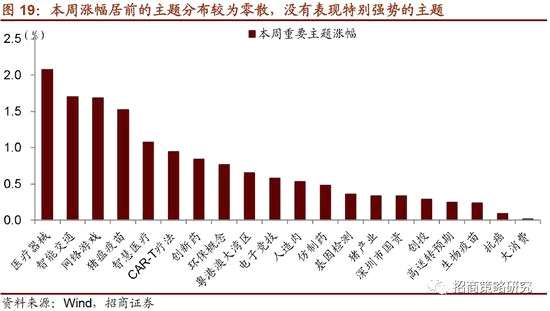 本周市場下跌,上證綜合指數(shù)周度下跌1.19%,中小板指周度下跌0.98%,創(chuàng)業(yè)板指周度下跌1.09%,滬深300周度下跌1.08%,我們跟蹤的重點主題指數(shù)漲幅數(shù)據(jù)顯示,漲幅居前的主題分布較為零散,沒有表現(xiàn)特別強勢的主題。