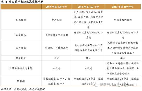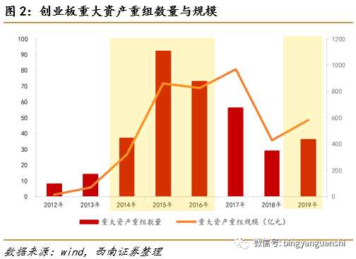 指數(shù)走勢上,需要觀察并購重組能否帶來業(yè)績的持續(xù)改善。在當(dāng)前市場風(fēng)格下,僅有外生性的注入而并非可持續(xù)性的業(yè)績改善,對股價支撐難以構(gòu)成有力支撐。而且,2018年創(chuàng)業(yè)板商譽(yù)的大幅減值,就是此前并購政策的后遺癥。在監(jiān)管上,也只能管到業(yè)績承諾期內(nèi)的承諾情況,對于業(yè)績承諾期外的情況,監(jiān)管無力也無權(quán)干預(yù),但這恰恰是當(dāng)前市場風(fēng)格所關(guān)注的焦點。