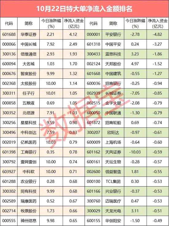 兩市特大單凈流出近19億元,9股特大單凈流入超億元,華泰證券凈流入資金居首。