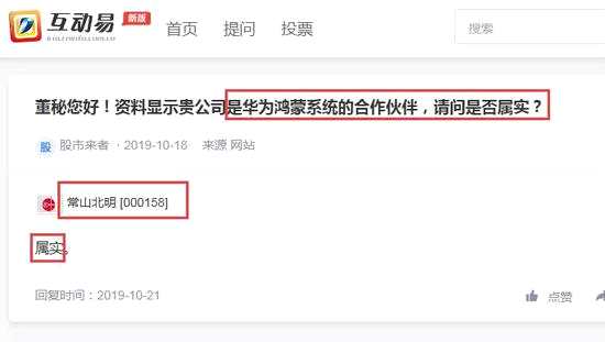 當(dāng)天,有投資者在深交所互動(dòng)易上咨詢(xún):“資料顯示貴公司是華為鴻蒙系統(tǒng)的合作伙伴,請(qǐng)問(wèn)是否屬實(shí)?”
