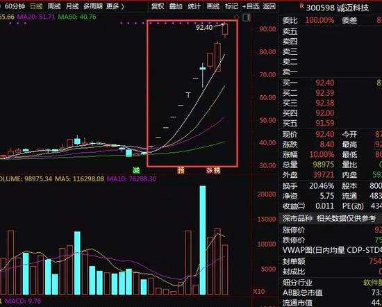 數(shù)據(jù)顯示,誠(chéng)邁科技自10月以來(lái)便開(kāi)啟連續(xù)大漲模式,截至10月22日收盤(pán),已連續(xù)11個(gè)交易日上漲,股價(jià)從9月末的35.15元一路飆升至目前的92.40元,累計(jì)漲幅高達(dá)162.87%,期間更有9個(gè)交易日漲停。