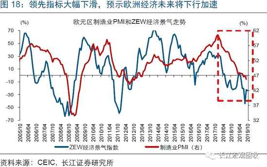 受美、歐經(jīng)濟加速走弱等影響,印度出口將繼續(xù)承壓,拖累印度經(jīng)濟進一步下行。由于前2大出口目的地分別是歐盟、美國,印度的出口增速受歐盟、美國經(jīng)濟走勢影響較大。2018年以來,隨著歐盟、美國經(jīng)濟雙雙走弱,印度對歐盟、美國及總出口增速不斷下滑。未來一段時間,隨著歐洲、美國的經(jīng)濟領(lǐng)先指標ZEW經(jīng)濟景氣指數(shù)、制造業(yè)PMI新訂單指數(shù)大幅回落,歐洲、美國經(jīng)濟下行速度趨于加快;受此影響,印度出口將繼續(xù)承壓,拖累印度經(jīng)濟進一步下行。