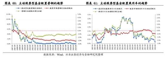低配比例居前的5個行業(yè)中,石油石化和建筑的低配比例比2019Q2都有所縮窄。其中石油石化的低配比例連續(xù)第3個季度縮窄。建筑的低配比例在2019Q2創(chuàng)新低后有所回升。銀行、電力公用和非銀金融的超配比例都有所下降,其中電力公用的低配比例再創(chuàng)2010年以來的新低,而非銀金融的低配比例連續(xù)3個季度擴大。