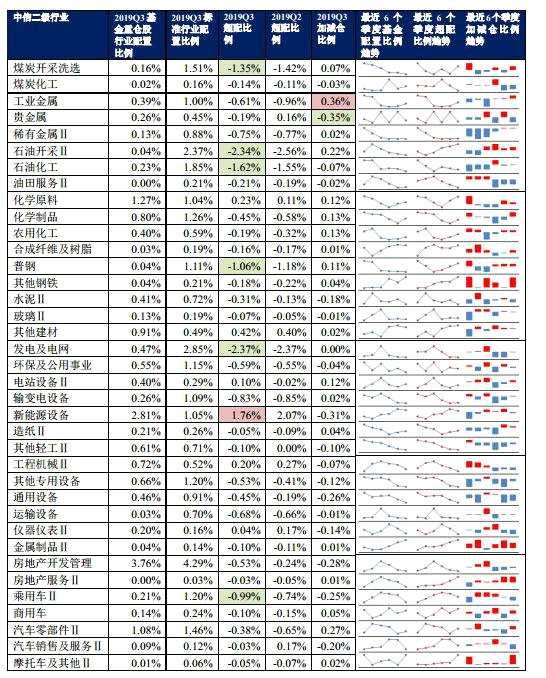 附表:按中信二級行業(yè)分主動股票型基金的重倉股配比情況
