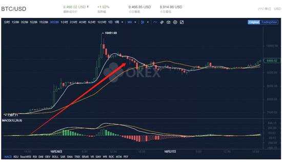 而作為區(qū)塊鏈應用之一的數(shù)字貨幣,也出現(xiàn)大漲。數(shù)字貨幣的龍頭比特幣一度暴漲40%,價格從不到7500美元一度漲至10491美元。