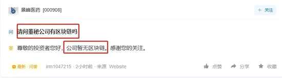甚至有如從事醫(yī)藥行業(yè)的【景峰醫(yī)藥(000908)、股吧】,也被問及公司有無區(qū)塊鏈,公司回復暫無區(qū)塊鏈。