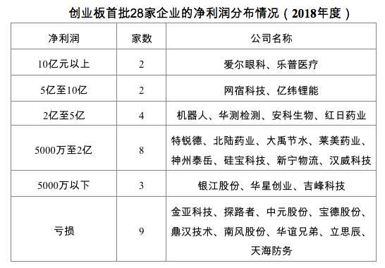 從2018年度凈利潤數(shù)據(jù)來看,【愛爾眼科(300015)、股吧】、樂普醫(yī)療兩家的凈利潤超過10億元,網(wǎng)宿科技、億緯鋰能在5億元到10億元之間,但也有華誼兄弟、南風(fēng)股份(維權(quán))等9家企業(yè)在2018年出現(xiàn)虧損。