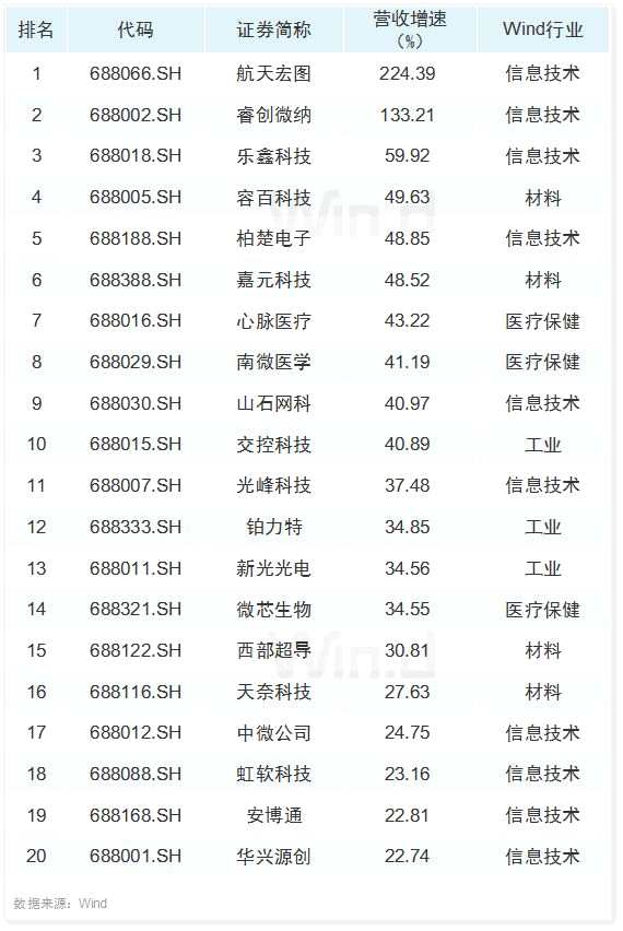 科創(chuàng)板營收增速榜