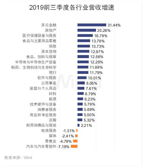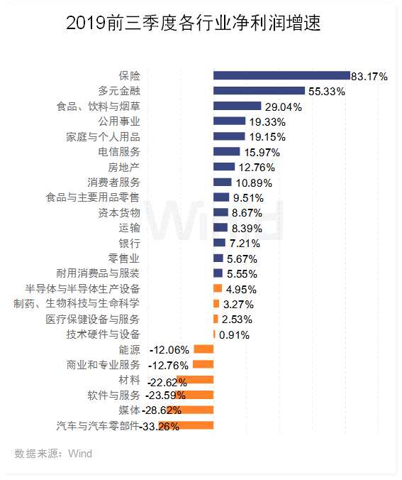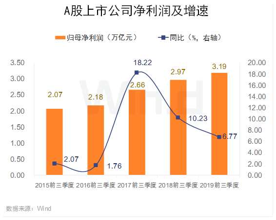 在剔除金融及兩桶油后,2019年前三季度A股實現(xiàn)凈利潤1.44萬億元,同比下降0.49%。