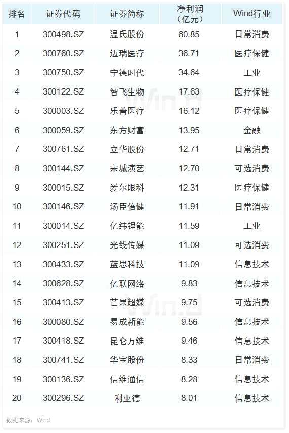創(chuàng)業(yè)板盈利榜TOP20