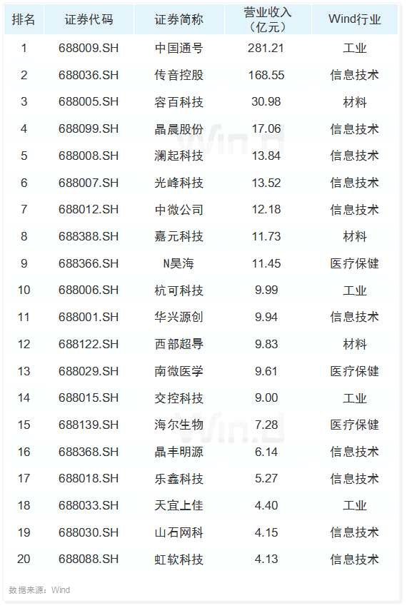 科創(chuàng)板營收榜
