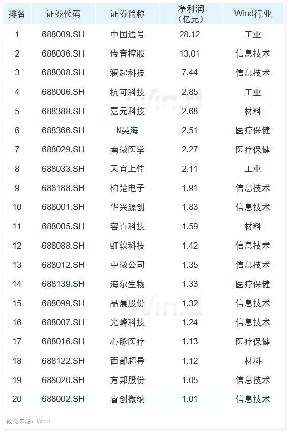 科創(chuàng)板盈利榜