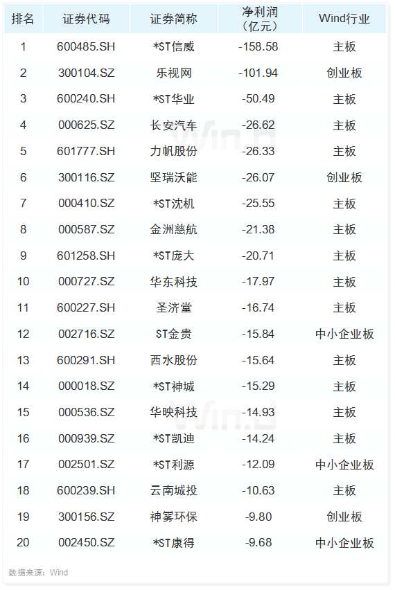 創(chuàng)業(yè)板虧損榜TOP20