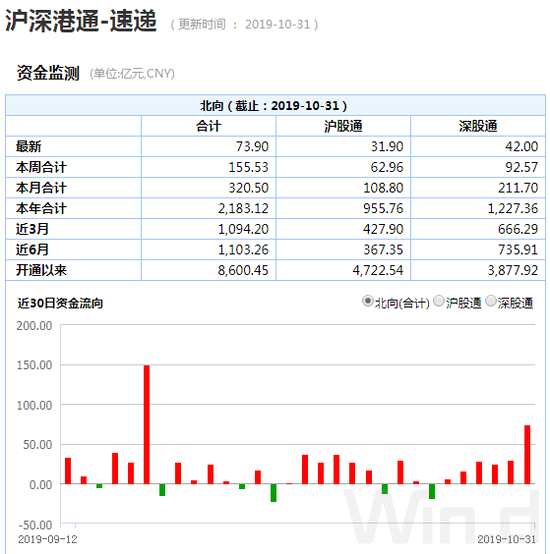 具體來看,10月31日當(dāng)天凈流入73.90億元,本周凈流入155.53億元,今年以來,凈流入已達(dá)2183.12億元。
