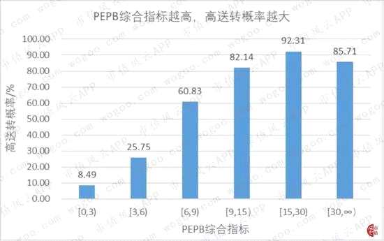 5、PE、PB綜合指標=PE*PB/(PE+PB),綜合指標越高,越易高送轉(zhuǎn)。