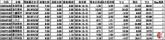 通過該模型得出2018-2019上市公司239家中56家公司可能會在2019年發(fā)布高送 轉(zhuǎn),具體如下表: