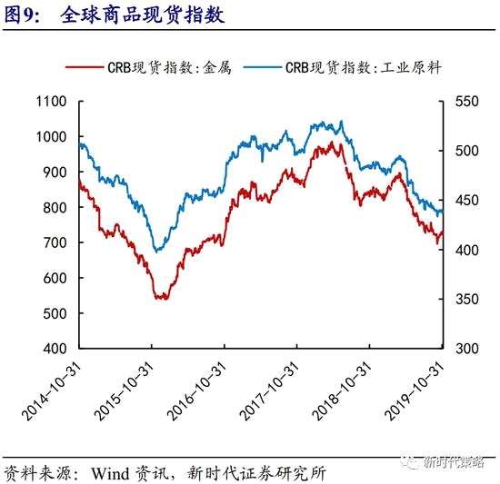 我們認(rèn)為全球的價(jià)格更能代表需求下滑的過程。如果看全球的工業(yè)品現(xiàn)貨價(jià)格指數(shù)(CRB指數(shù)),其實(shí)跌幅已經(jīng)不小了。所以這一輪經(jīng)濟(jì)下行在下行的時(shí)間和空間可能并沒有那么小,只是這一次沒有反映在利潤和價(jià)格層面。