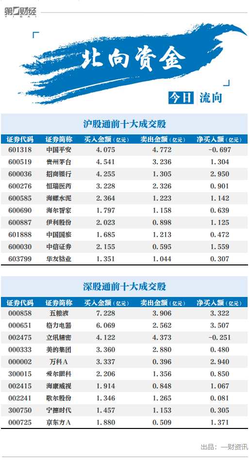 前十大成交股中,格力電器、五糧液、招商銀行分別獲凈買入3.51億元、3.32億元、2.95億元。中國平安、【立訊精密(002475)、股吧】分別遭凈賣出0.7億元、0.25億元。