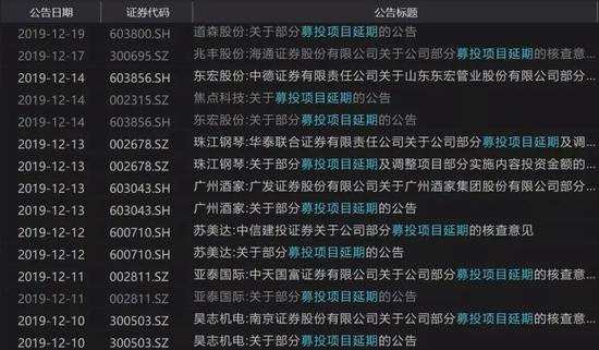 數據顯示,截至12月18日,12月以來,兩市有超過10家上市公司公告募投項目延期,另外有多家上市公司直接變更乃至終止募投項目。