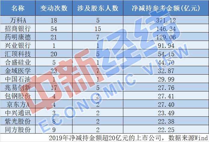 其中,萬科A、招商銀行、【藥明康德(603259)、股吧】三家上市公司股東凈減持的參考金額均超過百億,萬科A的重要股東合計(jì)減持金額達(dá)到301.75億元,成為今年以來A股被減持金額最大的上市公司。
