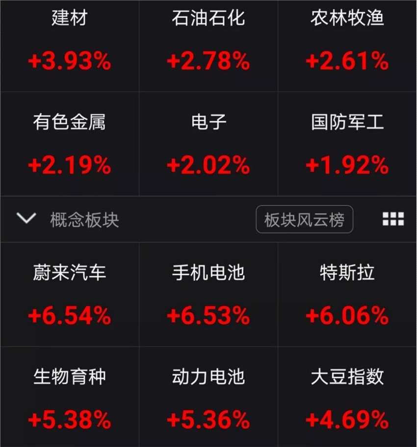 盤面上看,以電子、半導(dǎo)體和5G為核心的科技股重拾攻勢(shì),晶方科技等個(gè)股盤中直線拉升并漲停。不僅如此,銀行、保險(xiǎn)、證券等大金融板塊也紛紛跟進(jìn)。另外,得益于國(guó)產(chǎn)Model 3售價(jià)再次下調(diào),特斯拉概念股集體大漲,板塊內(nèi)逾10只個(gè)股上演漲停潮。