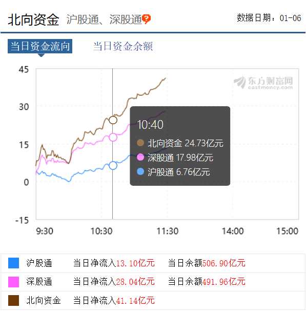 另外,上午北向資金凈流入達(dá)41.14億元,已超過上周五的全天凈流入值33.61億元。