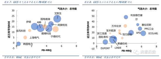 化工行業(yè):A 股龍頭估值合理,匹配度與美股近似。A 股化工龍頭估值與盈利均居于中等水平
