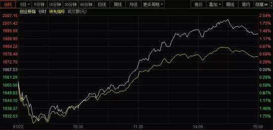 周三,A股市場大幅震蕩,早盤前半小時各主要股指一度下跌逾1.5%,后在芯片、消費電子等科技板塊的強勢拉升帶動下,大盤全線翻紅,股指拉出帶長下影線的陽線。創(chuàng)業(yè)板指數(shù)盤中一度突破2000點整數(shù)關(guān),創(chuàng)3年多來新高。