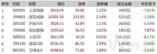 截至2月5日收盤,上證綜指漲1.25%報收于2818.09點;深成指漲2.14%報收于10305.50點;創(chuàng)業(yè)板指漲3.02%報收于1939.62點,萬得全A總成交逾8600億元,維持近日高位。