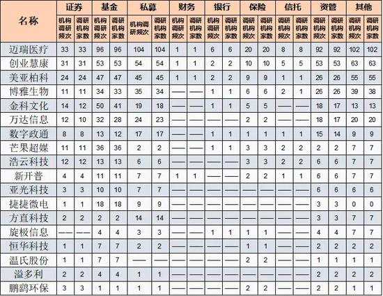 其中,邁瑞醫(yī)療、創(chuàng)業(yè)慧康、美亞柏科、博雅生物、金科文化、萬達信息這6只個股在短短8天內(nèi)均被超過100家金融機構(gòu)調(diào)研,可謂踏破了門檻。