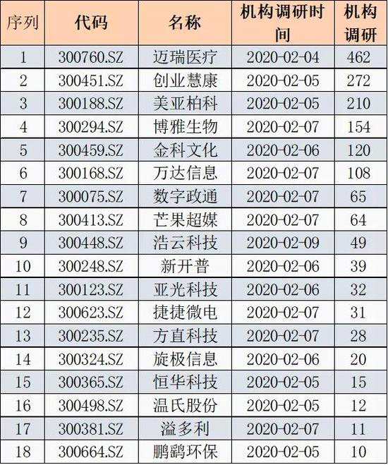 金融機構(gòu)節(jié)后火爆調(diào)研18只創(chuàng)業(yè)板個股1702次