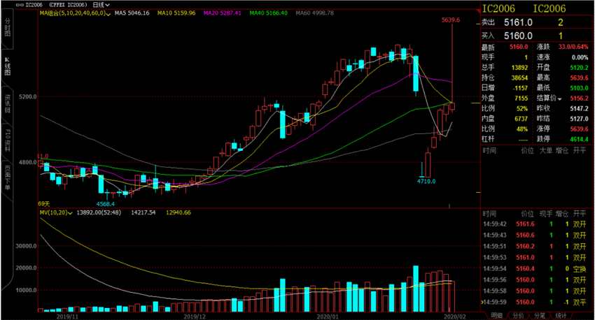 2月10日上午,中證500股指期貨遠(yuǎn)月合約(IC2006)盤中出現(xiàn)異動(dòng),期價(jià)一度瞬間漲停。成交記錄顯示,149手空單平倉(cāng)在漲停板價(jià)成交,這意味著進(jìn)行該筆交易的空頭秒虧近1500萬(wàn)。