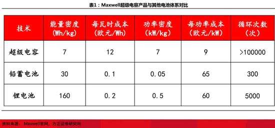 超級電容在循環(huán)壽命、功率密度、充放電效率上,相對傳統(tǒng)鋰電池?fù)碛蟹浅妰?yōu)勢,但由于能量密度、體積上存在巨大劣勢,目前仍然不能替代鋰電池作為新能源車的主要動力源。我們認(rèn)為未來超級電容將會和鋰電池組合,共同組成新能源車的動力系統(tǒng)。
